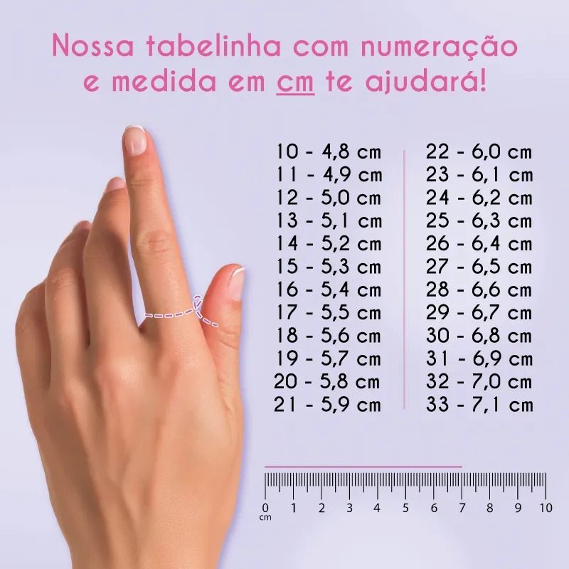 Todos os anéis disponíveis em nossa loja são medidos de acordo com as informações dispostas na tabela abaixo: